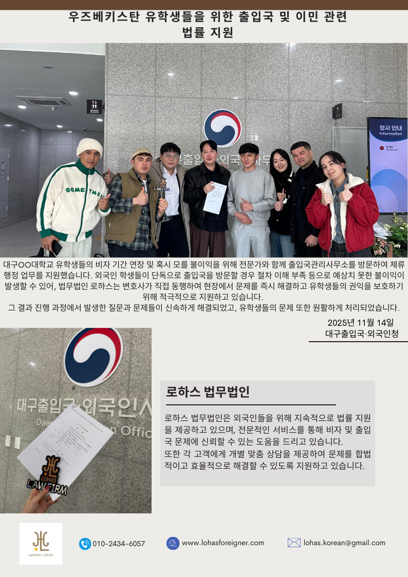 우즈베키스탄 유학생들을 위한 출입국 및 이민 관련 법률 지원