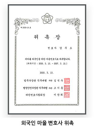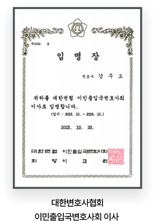 - 現) 대한변호사협회 이민출입국변호사회 이사