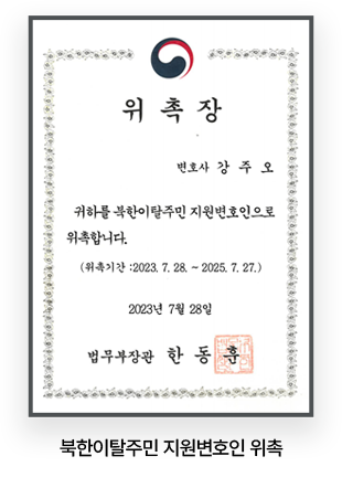 - 現) 북한이탈주민 지원변호인 위촉