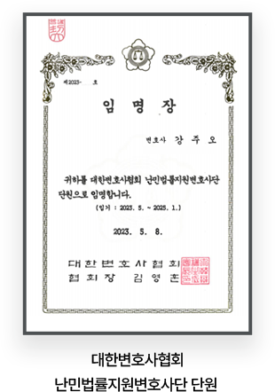 - 現) 대한변호사협회 난민법률지원변호사단 단원 임명